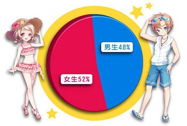 從數據中可以看的出來,菁英封測期間男女生比例平均,都同樣受到玩家的喜愛。